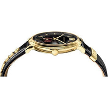 | Zifferblatt: | Analoganzeige, Farbe: schwarz mit Versace Logo und goldfarbene Zeiger / Indexe |