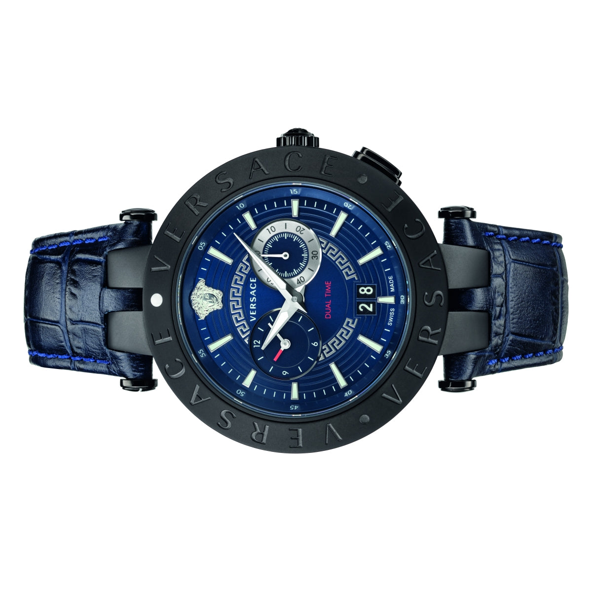 | Zifferblatt: | Analoganzeige, Farbe: schwarz mit Versace Logo |