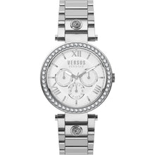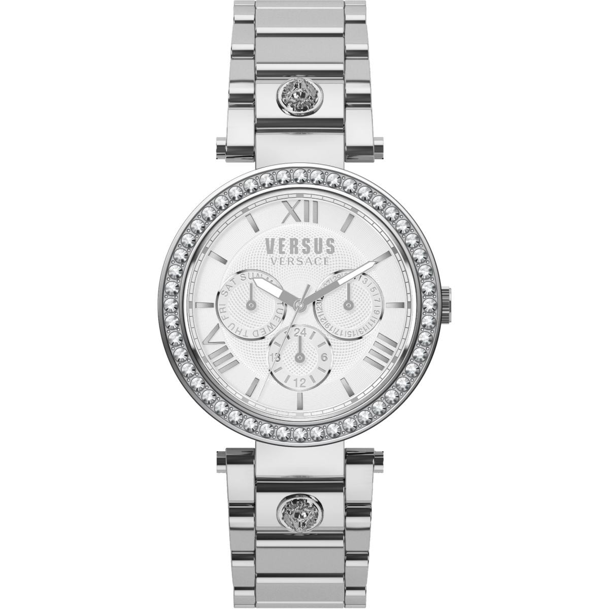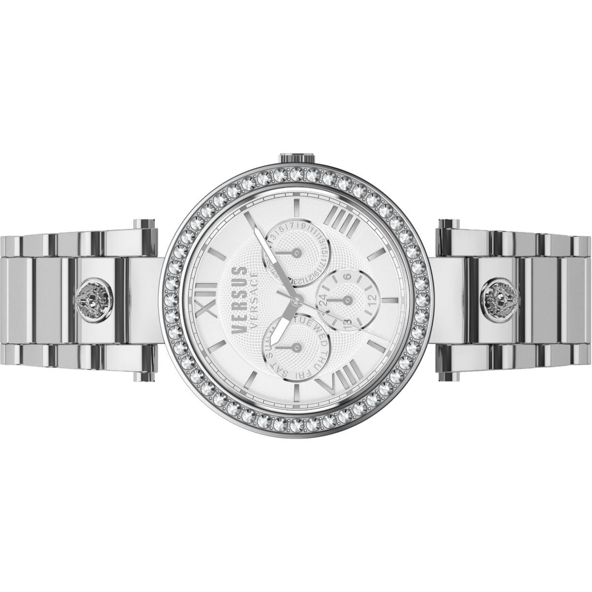 Zifferblatt: Analoganzeige, Farbe: silber mit Versus by Versace Logo und silberfarbigen Zeiger / Indexe