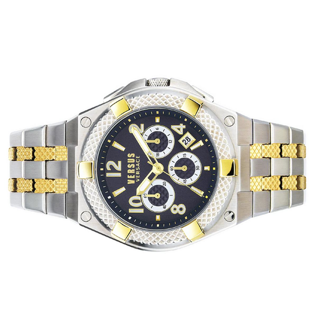 | Zifferblatt: | Analoganzeige, Farbe: blaufarbig mit Versus by Versace Logo und goldfarbenen Zeiger / Indexe |