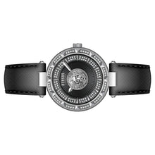 | Zifferblatt: | Analoganzeige, Farbe: schwarz mit 3d-Löwenkopf und Steinchen besetzt |