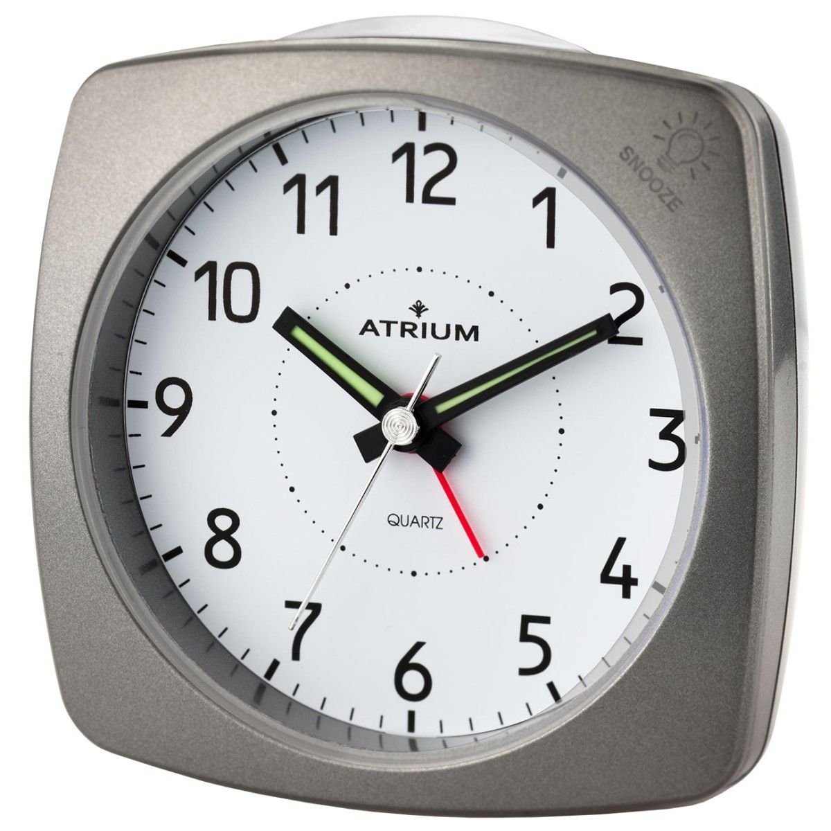 | Der elegante und gleichtzeitig klassische Wecker von ATRIUM in metallic anthrazit verfügt über einen Obenabsteller, eine Schlummerfunktion sowie Beleuchtung, die bei Alarm blinkt. Die Schlummerfunktion und das Licht werden durch Druck auf den Gehäuserand aktiviert. Das geräuscharme Quarzwerk mit fließender Sekunde sorgt für einen ungestörten Schlaf. Griffige Einstellknöpfe auf der Rückseite unterstützen die leichte Handhabung. | |
