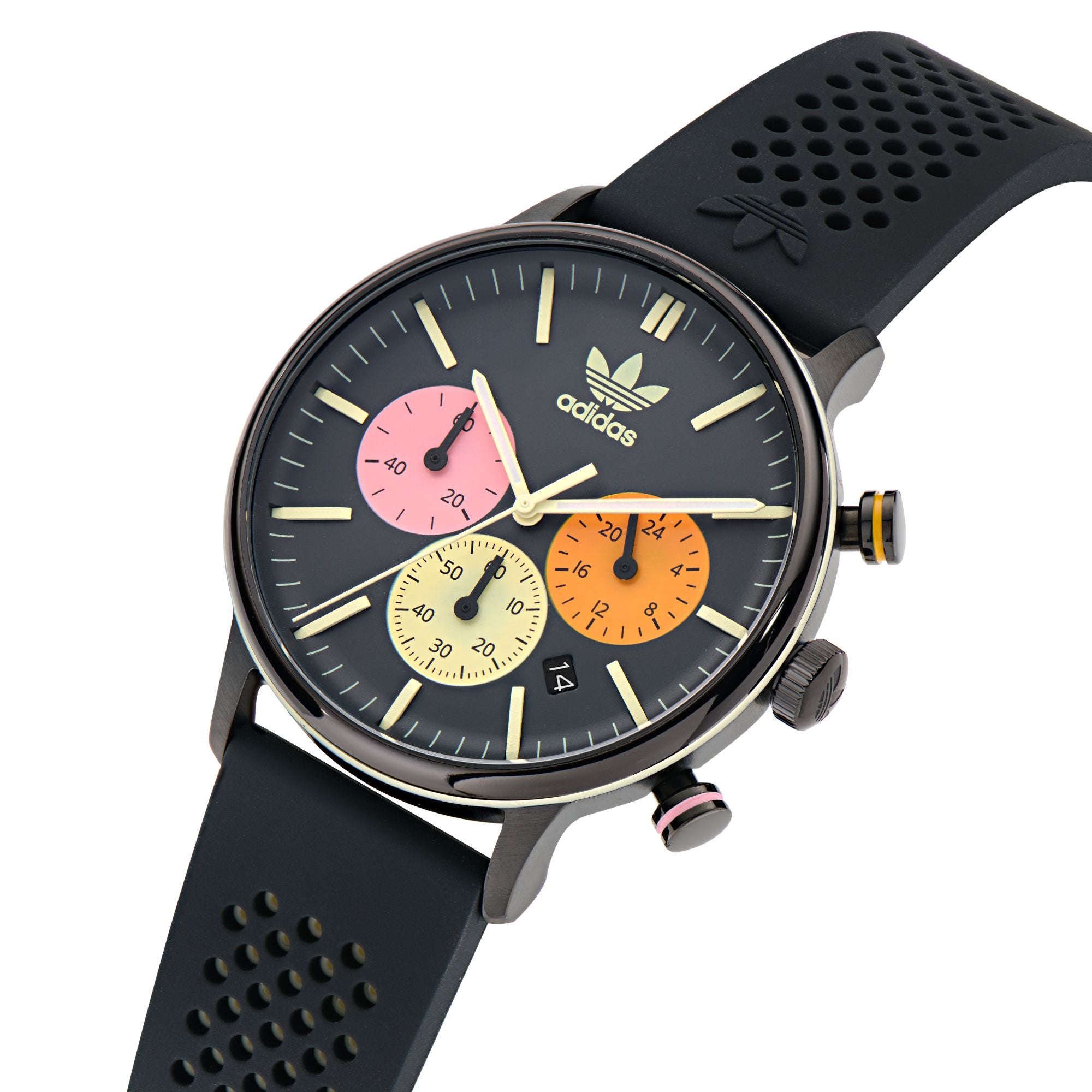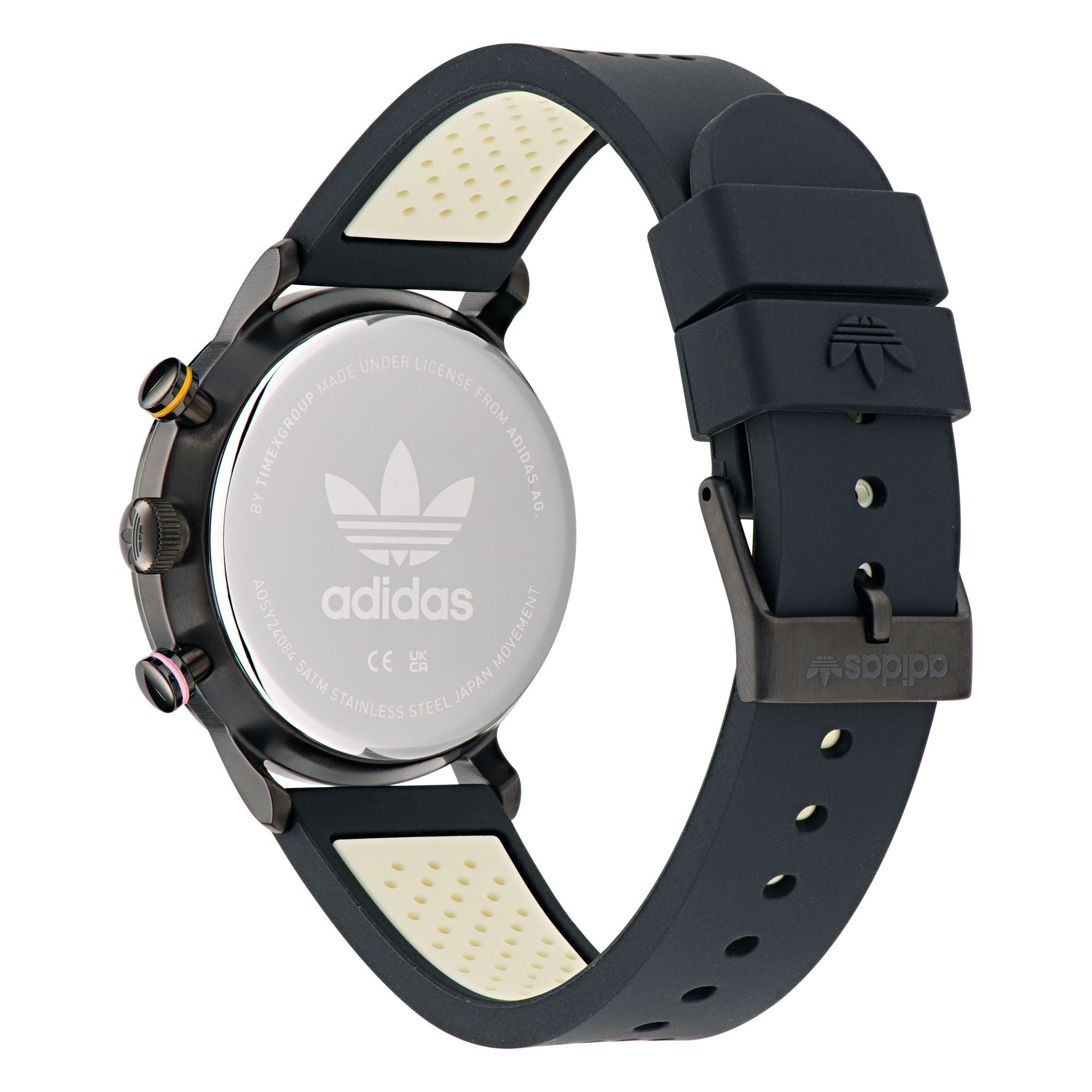 | Armband: | schwarzes Silikonarmband, Dornschließe Breite: ca. 20 mm Länge der Uhr: ca. 22 cm |