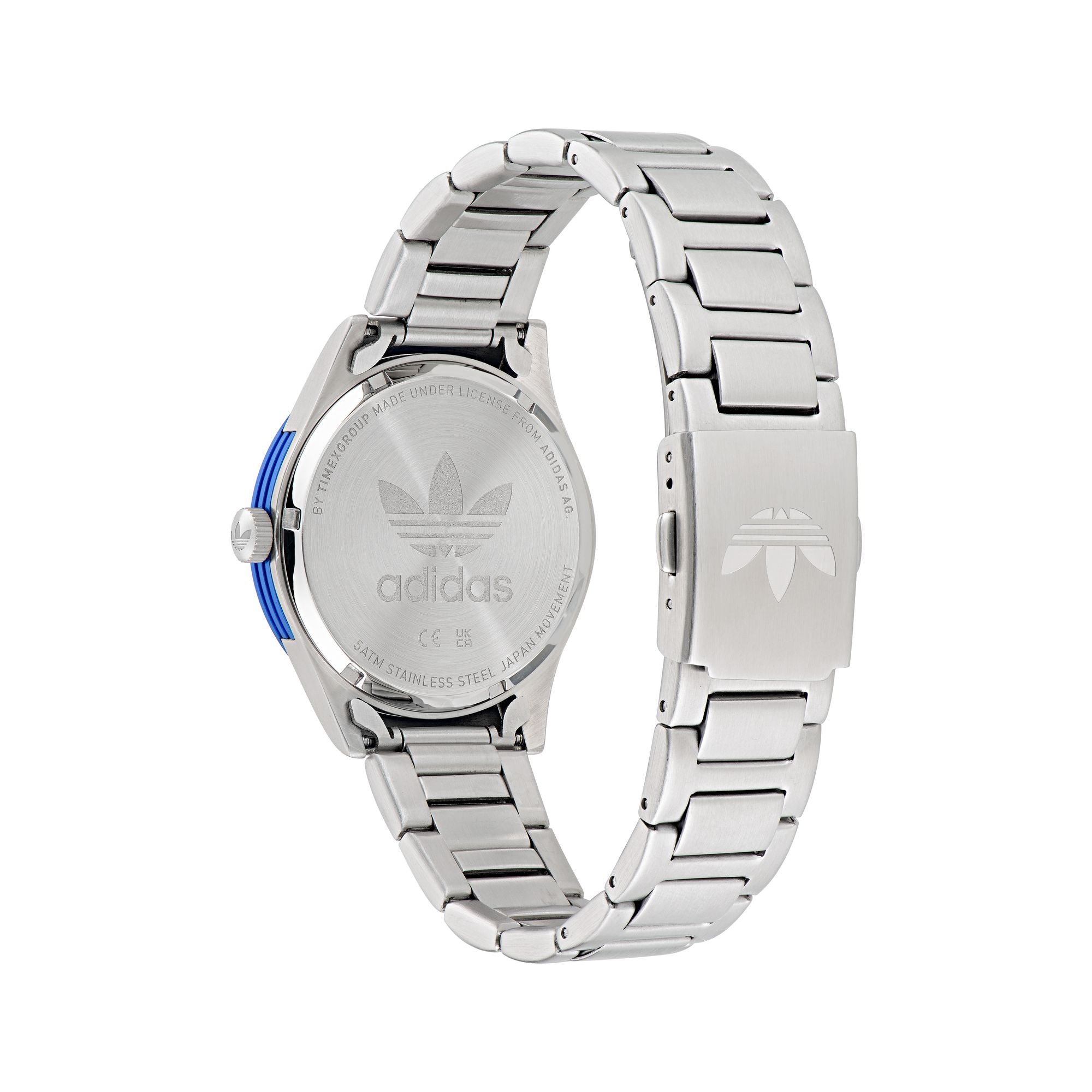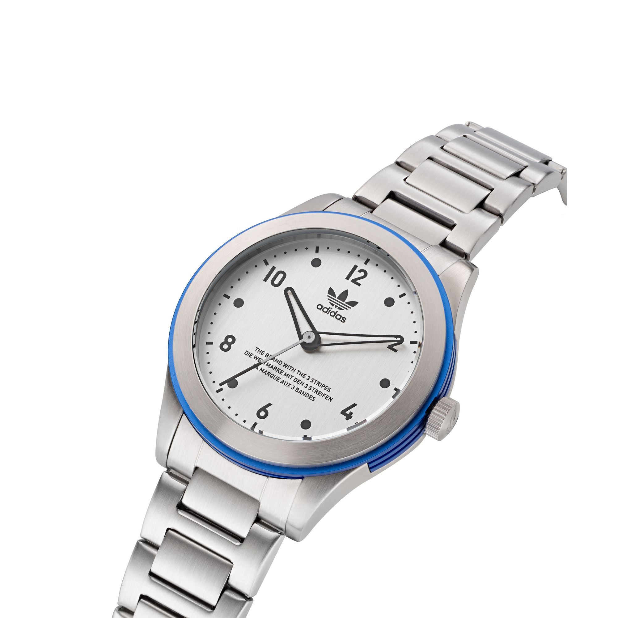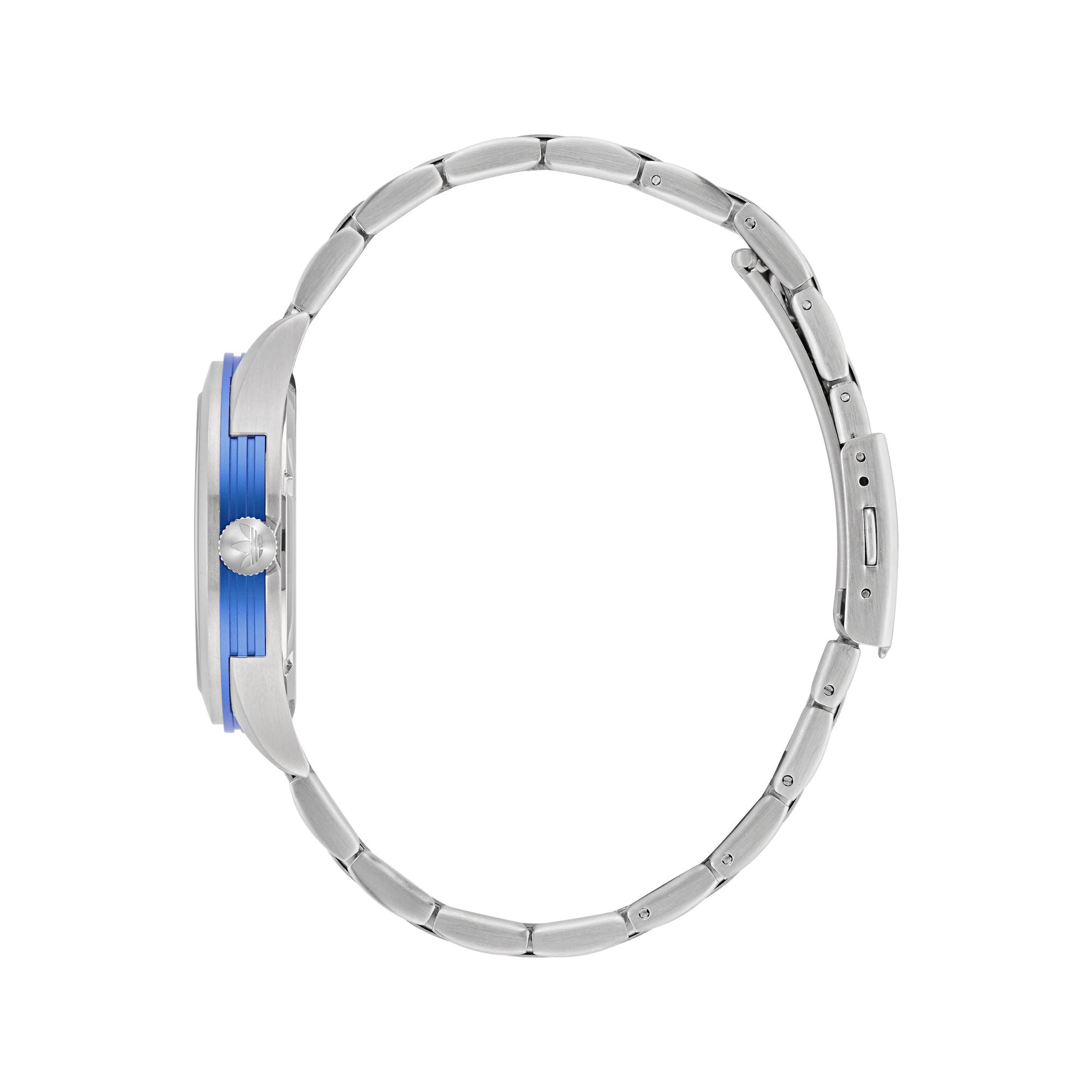 | Gehäuse: | Edelstahlgehäuse silberfarben, Lünette silber/blau, Durchmesser ca. 40 mm (ohne Krone), Höhe: ca. 10 mm |