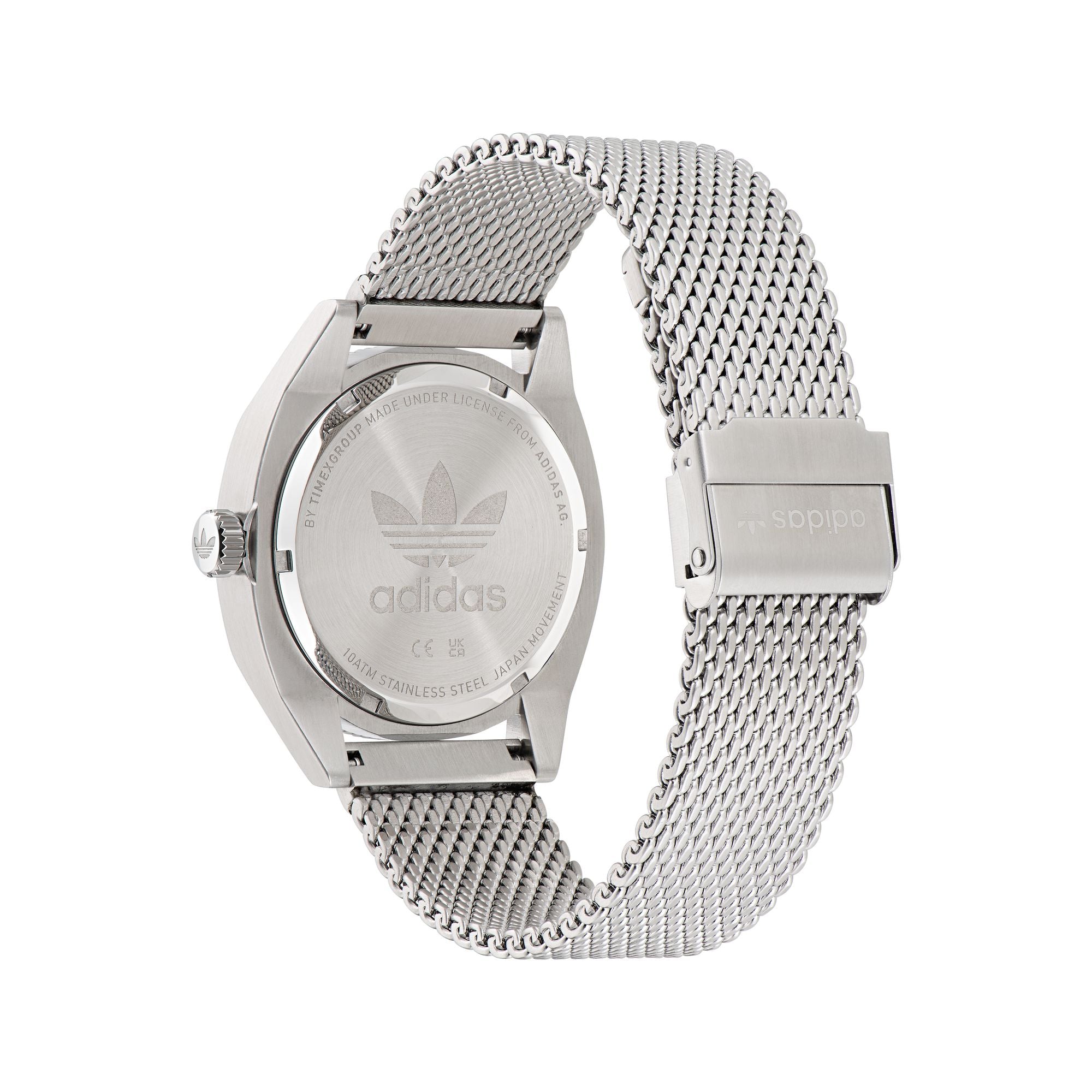 | Armband: | silbernes Edelstahlarmband, Klappschließe Breite: ca. 21 mm Länge der Uhr: ca. 22 cm |