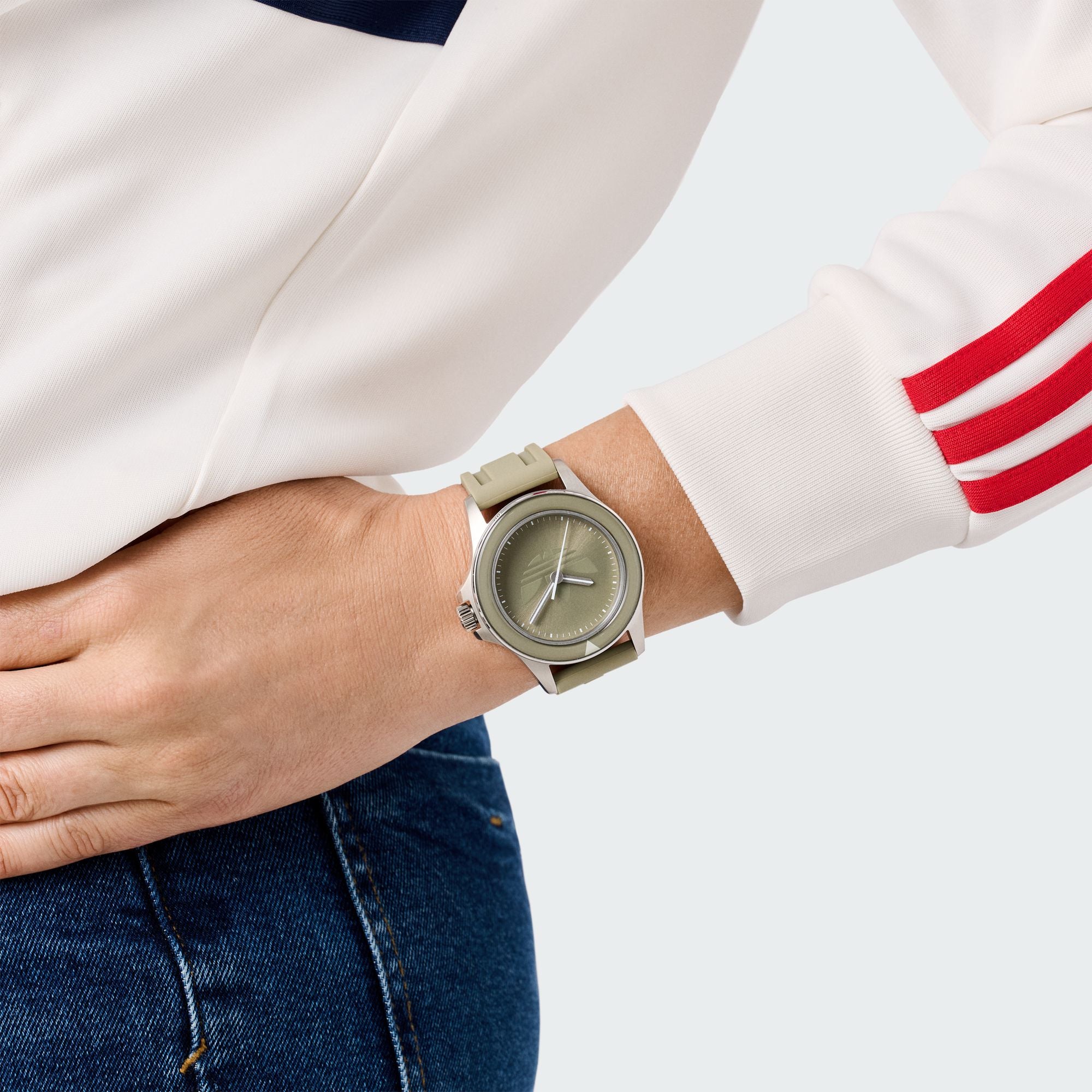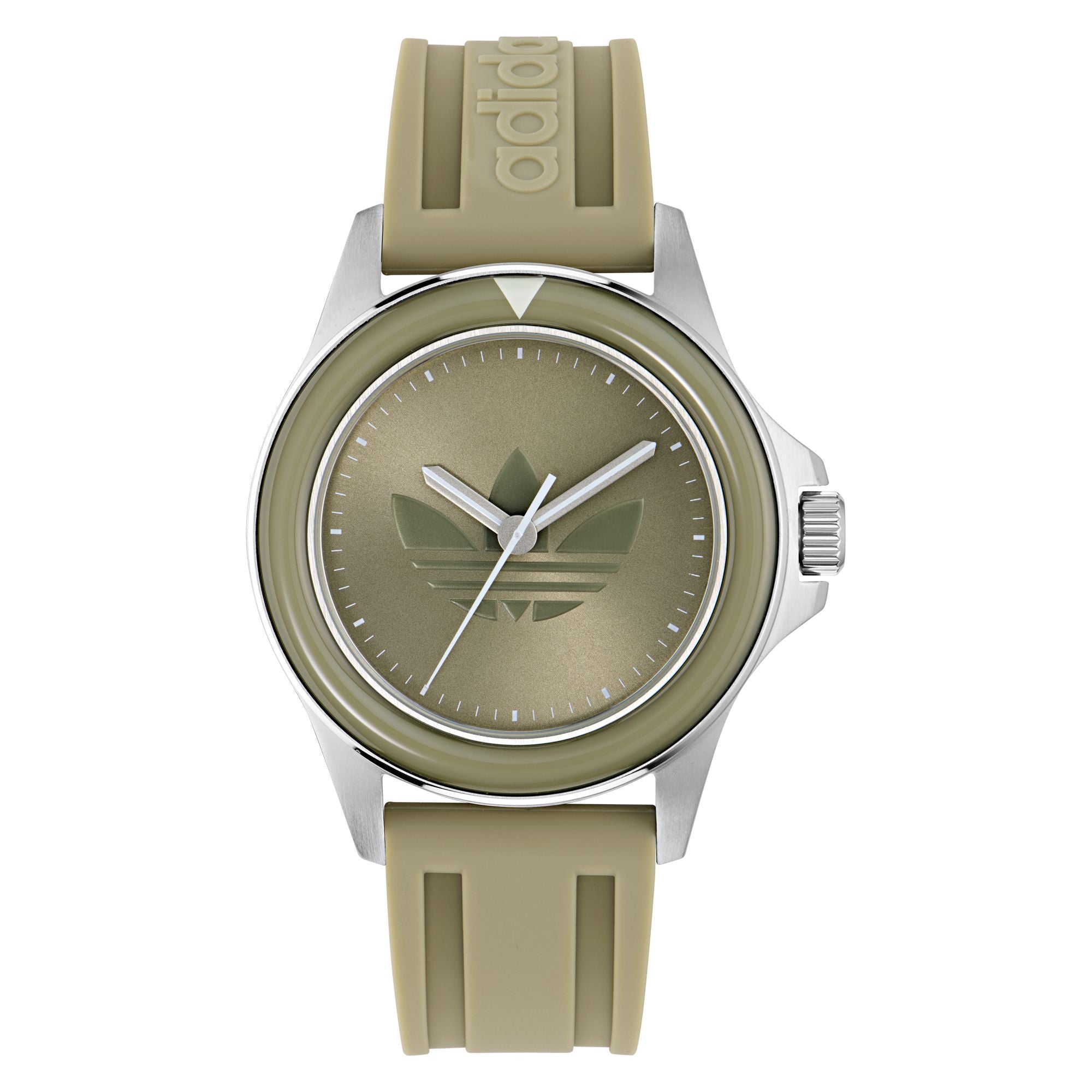 | Armband: | beiges Silikonarmband, Dornschließe Breite: ca. 22 mm Länge der Uhr: ca. 22 cm |