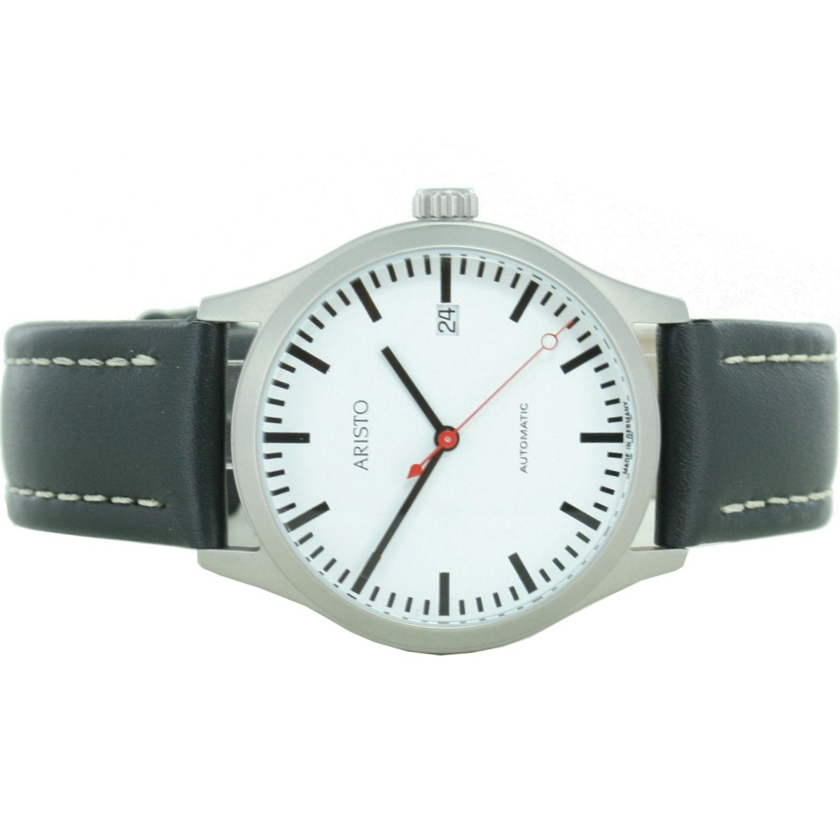| Armband: | Lederband schwarz mit weißer Naht, Breite: ca. 20 mm Länge d. Uhr: ca. 23 cm |