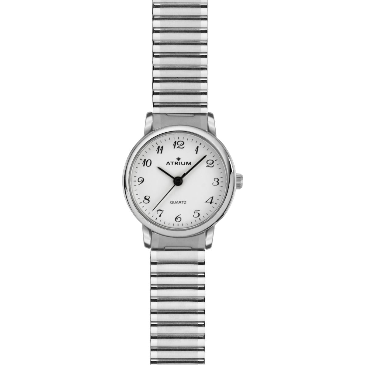 Die klassische Zugbanduhr von ATRIUM vereint praktischen Nutzen und schlichte Eleganz in einem. Als dezentes Accessoire eignet sich die Uhr perfekt als täglicher Begleiter und ist mit 5 bar Wasserdichtigkeit auch vor Wasser gut geschützt. Eine Besonderheit hierbei sind, neben dem deutlichen Zifferblatt und der Datumsanzeige, die breiten Zeiger die zu einer schmalen Spitze verlaufen. Das elastische Stahlband glänzt mit seinen am Rande polierten Bandgliedern und gibt der Uhr einen besonderen Touch.  | 		|