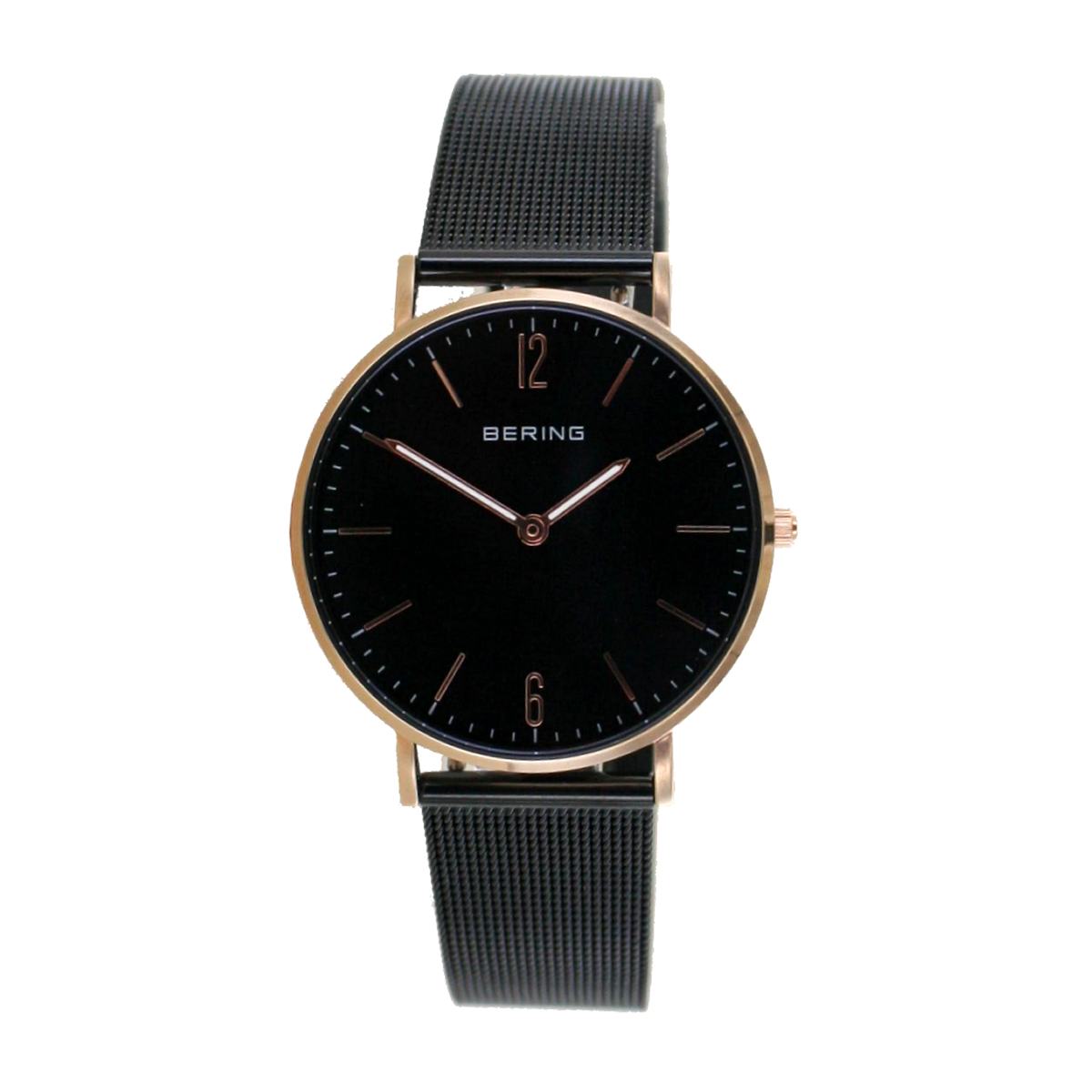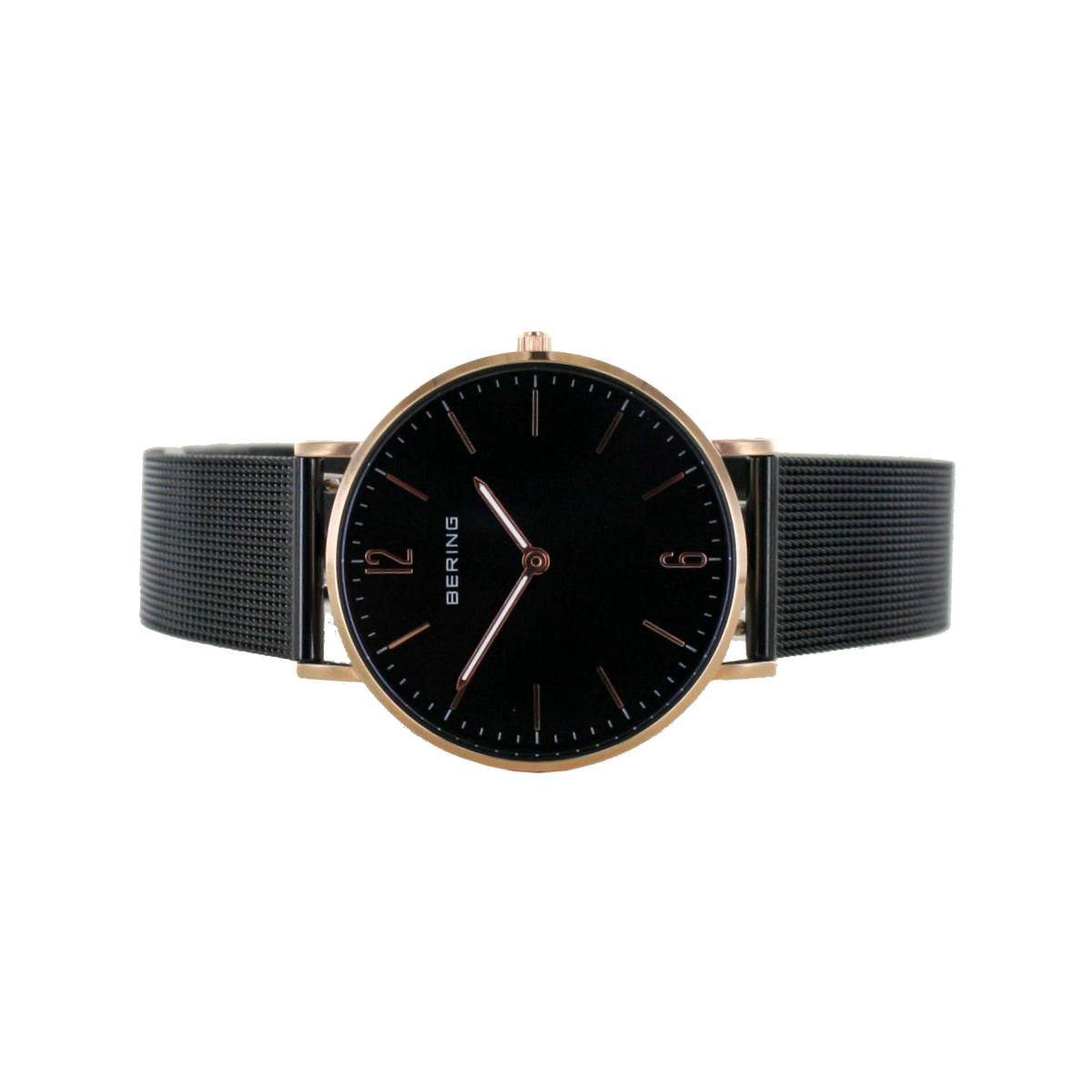 | Armband: | schwarzes Edelstahl Meshband, Breite: ca. 1,6 - 1,8 cm Länge d.Uhr: 21,5 cm, Druckverschluss mit Sicherheitsbügel |