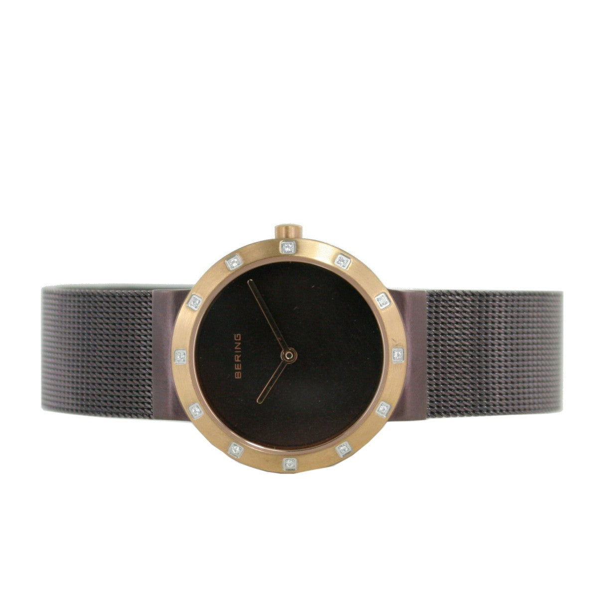 | Armband: | braunes Meshband, Breite: ca. 1,6 cm Länge d.Uhr: 20,5 cm, Druckverschluss mit Sicherheitsbügel |
