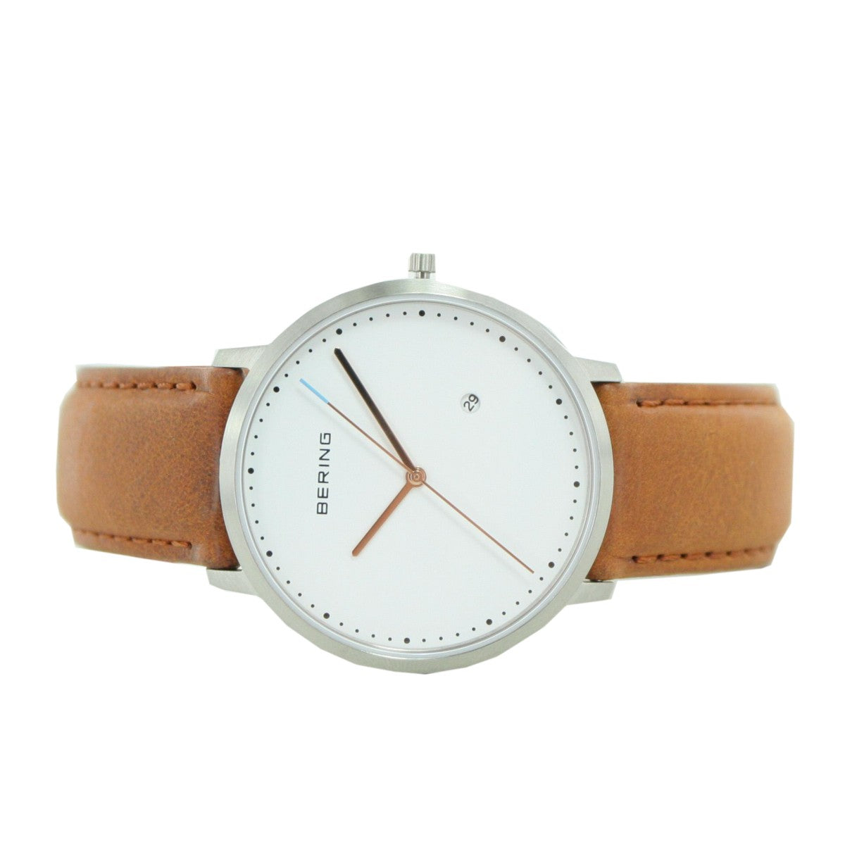Armband: | braunes Lederarmband, Breite: ca. 2,0 cm Länge d.Uhr: 24,0 cm, Dornschließe |