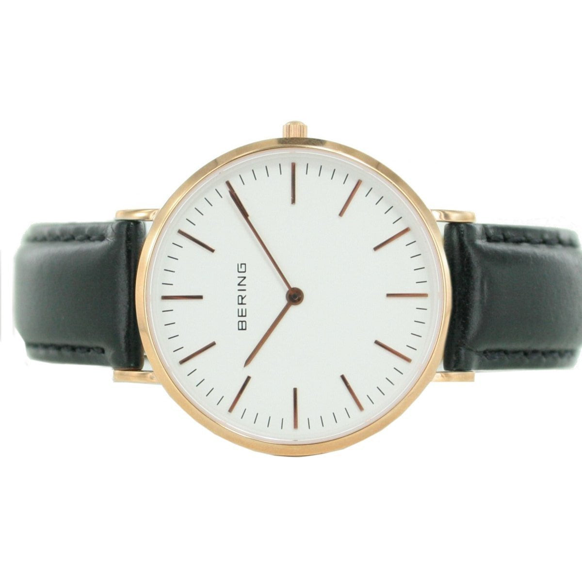 Armband: | schwarzes Lederarmband, Breite: ca. 1,8 cm Länge d.Uhr: 24,0 cm, Dornschließe |
