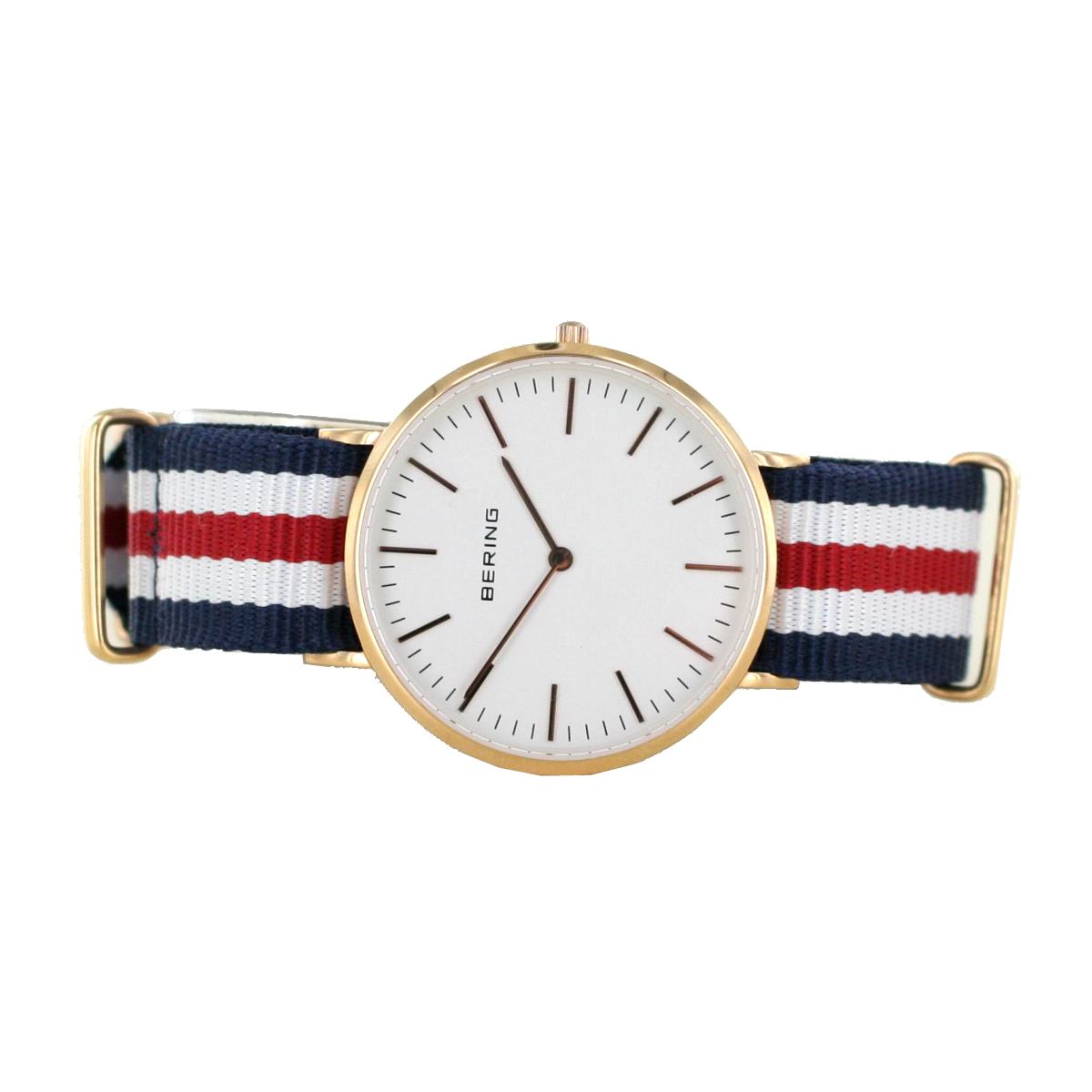 Armband: | buntes Nylonarmband, Breite: ca. 1,8 cm Länge d.Uhr: 24,0 cm, Dornschließe |