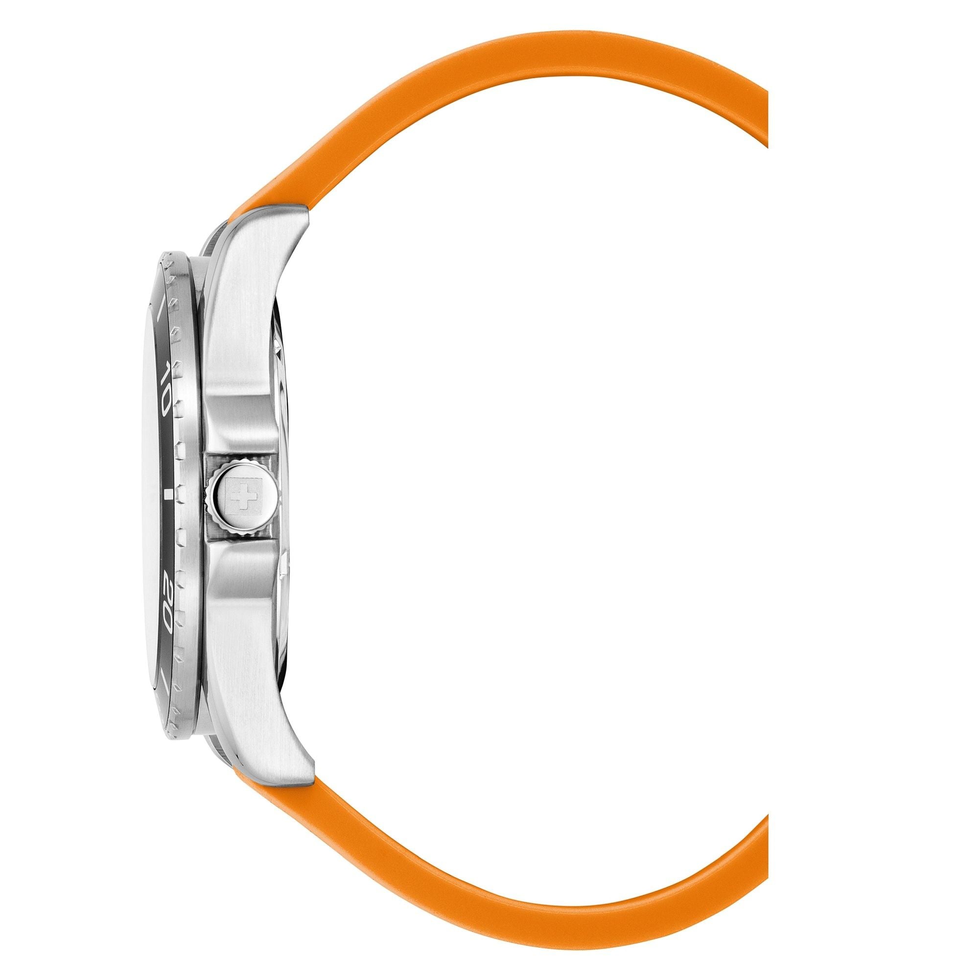Armband: | Silikonarmband orange mit Dornschliesse, Breite:ca. 2,2/2,0 cm, Länge d.Uhr (Gesamtlänge): Herren Standart |